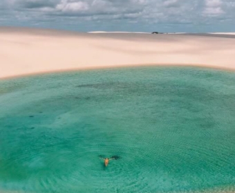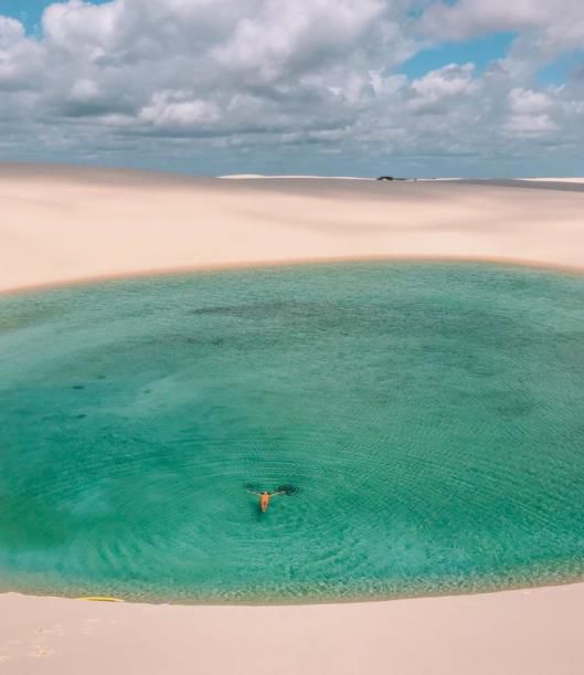 Saída de Barreirinhas em veículo 4x4 que nos conduzirá até uma das balsas para travessia pelo Rio Preguiças, que dá acesso ao Parque Nacional dos Lençóis Maranhenses (PNLM). O percurso dura em média, 45 minutos, em uma trilha de areia, cortando a vegetação do cerrado até a chegada nas dunas. aos pés das duas, descemos do veículo e iniciamos uma caminhada de aproximadamente 10 minutos até a Lagoa Azul ou lagoa da prata (a depender da época do aνο, nossa escolha sempre será pela visita a melhor lagoa da estação) onde curtiremos delicioso banho.