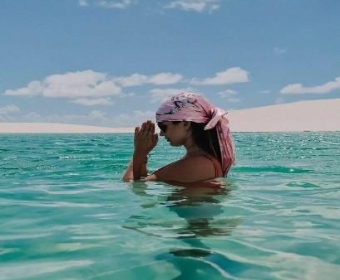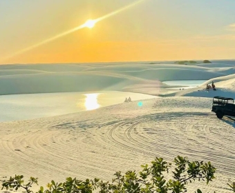 Saída de Barreirinhas em veículo 4x4 que nos conduzirá até uma das balsas para travessia pelo Rio Preguiças, que dá acesso ao Parque Nacional dos Lençóis Maranhenses (PNLM). O percurso dura em média, 45 minutos, em uma trilha de areia, cortando a vegetação do cerrado até a chegada nas dunas. aos pés das duas, descemos do veículo e iniciamos uma caminhada de aproximadamente 10 minutos até a Lagoa Azul ou lagoa da prata (a depender da época do aνο, nossa escolha sempre será pela visita a melhor lagoa da estação) onde curtiremos delicioso banho.